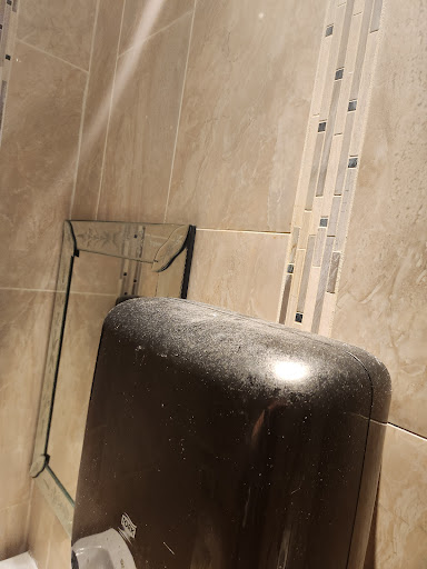 When I went to the bathroom, it was horrible. Floor was sticky, and papertowels were on the ground. When I checked on top of the paper tower cover, it was greasy and dusty. Wonder when they cleaned it....
