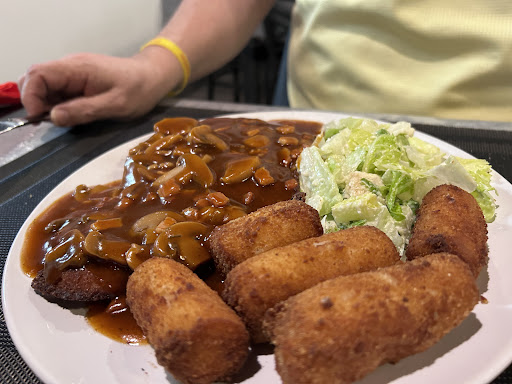 Where does a person start, first attempt should have been a indication of the lack of service and professionalism. We were turned away when the restaurant had approx. 2/3rd of the tables open for service. They said to come back in about 1.5 hours and we just went to another establishment. The second attempt was productive but far from pushing the rating up past a fraction of 1 star. The appetizer came out fresh from the microwave with yes....canned mushrooms. Seeing that it was 4 pm we were the only ones in the restaurant, the sounds from the microwave could't be mistaken for anything else and then the appetizer came out.