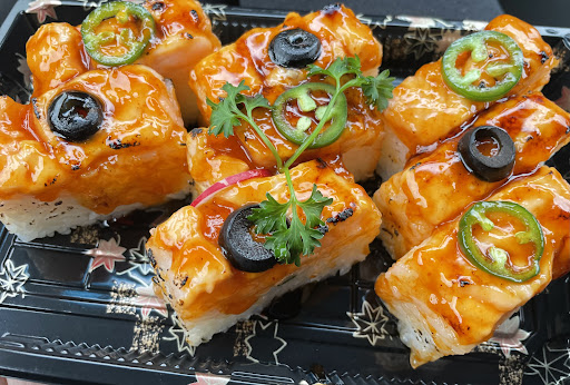 Ā Ā Ā Read morewhat an unassuming little place! located inside a virtual golf lounge. limited seating so definitely more of a takeout place. i ordered the salmon pressed combo and it was great. pressed sushi had asparagus and cream cheese on the inside which i never had before but it worked well. the roll was very filling. the sweet/spicy glaze they put is so tasty and everything tasted fresh.