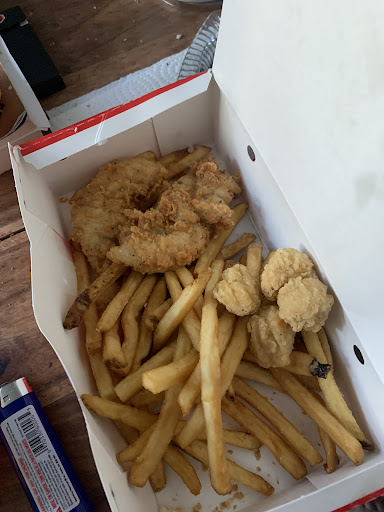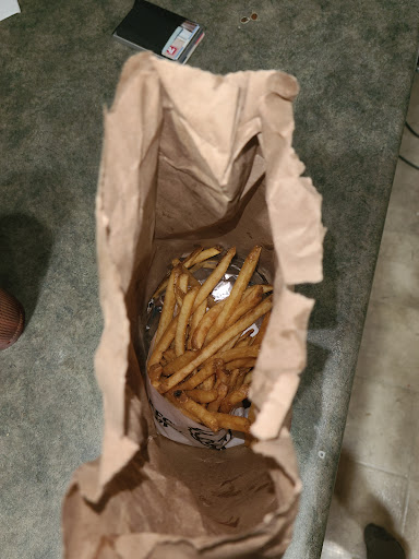 When handed the fries it almost came in a bucket like the chicken but smaller and with no lid...
