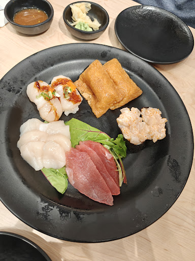 Food is good. The red tuna was mushy and not fresh though. The scallops were fresh. The ramen, female dragon roll, the octopus roll - I can't remember the name of it - were all tasty. Portion sizes are good. So much variety on the coil bound menu! The ramen is well priced and tasty. The golden fried chicken is delicious and so tender and juicy. Would definitely order it again. We would order almost everything again - minus the red tuna. Price for an extravagant lunch was about $45 per person. We ate our fill and were very grateful to pop over to the IKEA which is just around the corner and get in a much needed walk after lunch. The atmosphere is very much like a food court or busy cafeteria. It's noisy with the din of a bustling food court. There is ample seating. Think food court, but just for Kinjo. Our food arrived quickly. You will have multiple staff bringing out your food and one main server. One server dropped off a dish and had no interest in removing the large empty plate from our table to make room for the new, smaller dish. We were seated at a table for two. The lazi and unconcerned attitude was a bit of a surprise. Perhaps people who deliver food don't clear dishes away from the tables? Even if there is no room on said table without clearing the dish? đ¤ˇââď¸ Our main server was the opposite. He was attentive, friendly, and quick to help us with two missing dishes at the end.
