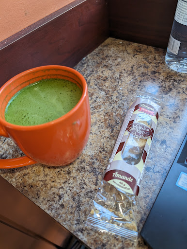 Read moreNot many gluten free options. I Had the Matcha Latte with a gluten free biscotti. The latte was as good as anywhere else and the only gluten free stuff they had was bread for a sandwich, a breakfast roll and the biscotti. Also I asked for my latte in a mug to stay and he gave it in a paper cup, so I had to ask twice but he fixed it quickly no problem; very friendly. They have a long counter facing the window designed for laptops and students but it seems like they gave up and lined it with plants, because I had to move a plant to make space for my laptop 💻, I like plants but maybe some hanging ones or have some bigger ones on the ground. There was also cold air blowing up from the vents below, but it might have just been where I was sitting.