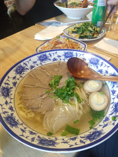 Amex not accepted. They have an open kitchen, and you can see the noodle making. The way the chef flips and twists the noodle in the air is fascinating. The beef noodle soup 牛肉面 with thin noodles was authentic enough (could have more cilantro and some hot pepper oil), and it was better than the house noodle soup with beef brisket 红烧牛腩面. The portion of meat for the side dish spiced chicken with chilly sauce 椒麻鸡 is huge. It is not too hot, but it has lots of peppercorn. If you are not used to Chinese spicy food, this might be a bit too spicy for you. I would have preferred less peppercorns and more chilly oil to make the chicken less dry.
