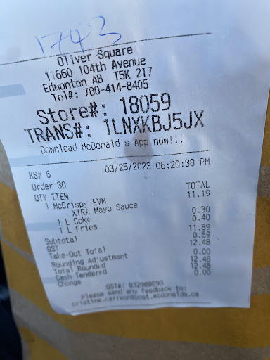 Read moreMay 22, 2025 Location: McDonald , 104 Avenue and 116 Street