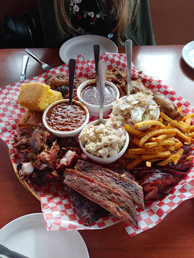 Ā Ā Ā Read moreWe stopped in here recently for the first time to give it a try and had a pretty good experience. The atmosphere in the restaurant was great and the music choices were top-notch, but it was extremely loud and we had to half-shout across the table just to be able to hear each other over it. The service was friendly and helpful, if a little under-attentive. For a place that does sit-down service, it struck me as a little weird to be told to go refill my own drink if I wanted a top up. The food was okay. We absolutely loved the smoked sausage, chicken, and pulled pork, but the brisket - while flavorful, was dry, the ribs were a little under-seasoned, and the burnt ends were also super dry and chewy. The pit beans needed seasoning and a little more sweetness, the cornbread was on the dry side, and the coleslaw was average, but the potato salad was really good. The saving grace was the barbecue sauce, which was the perfect blend of sweet and smoky and tangy and really elevated the meats that were on the dry and bland side. All in all, we'd be willing to give it a second chance, maybe try some of the other menu items. It's worth giving this place a shot if you're a big...