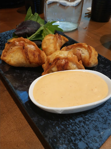 With only 3 tables to cater to, including us, the server was friendly enough to let us choose our seats, there's a lot more space and seating than I was expecting. The painted mural was super cute with the theme rolling towards their menus as well. Specializing in chicken broth instead of the norm of pork base. I didn't know what to expect flavor wise. Jumped on my comfort base and ordered the Black Garlic - ($14.5) - First glance looked like my normal ramen bowl. First con might be the fact that they opted for pork shoulder instead of pork belly, which maybe made me not like how "untender" my meat slices were. Typically when chashu is served, it's super soft to the touch and you're able to slurp it all down with noodles. This had a bit of bite to it which is fine. Just not what I would have chosen. The black garlic favor didn't fully come through so I added a ton of the chili spices that was on the table. which in the end made my bowl super tasty. But the aftermath of all that msg and salt made me super dehydrated and in need of a dozen cups of water. (learn from my mistakes ya'll) Nostalgic Japanese Shoyu - ($14) - noticed the price difference as I'm writing this review that the only topping missing from this was maybe the extra half of the egg, is half an egg .50cents? I really liked the broth more on this, creamier and actually came off more rich in flavor. Deep Fried Gyoza - ($6) - served with a side of spicy mayo, this was little bits of deep fried goodness, filling was super juicy.