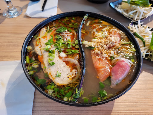 I probably wouldn't come here unless it's a late night meal and everywhere else is closed. The food is adequate, but given the price, it's not my first choice. It's nice though that they offer a half and half option that no other Vietnamese restaurant that I've been to does. The service though is seriously lacking and amateur, so I hope they improve on that. I know everyone starts somewhere but I think they should at least have someone older with more experience there to...