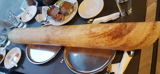 Every visit to this restaurant is truly interesting. This time we had their 4 feet Family Dosa . Its sufficient for 4 people to eat . Its served with coconut chutney, Red Onion chutney and Tiffin Sambhar which is light and different . The taste was good, fresh and had a subtle taste of Desi Ghee. We also had the Indo-chinese Pepper Chicken which was very tasty. Their dessert of Flan was mouthwatering and so light that can be compared with any top Restaurants in Edmonton . This restaurant has free parking available and is on 23rd Avenue toward 17 street close to the Medows Recreation Center. The owners and Chefs were very welcoming and made our visit...