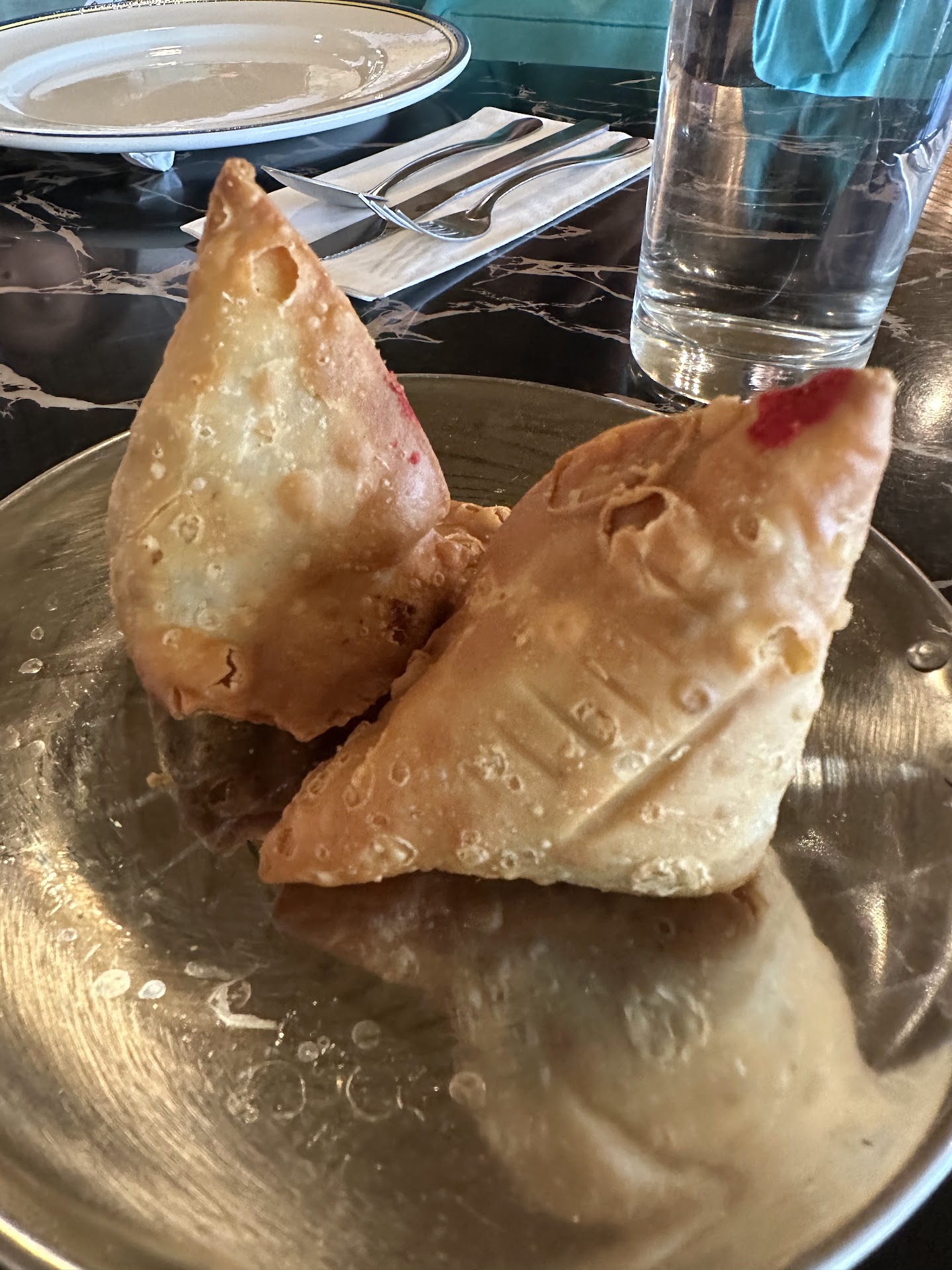 Beef Samosa - this samosa had very little beef and was mostly potato. I would have preferred more beef in the filling. The tamarind chutney sauce that came with the samosa was very good. It also came with a green sauce that was different from what I am used to. It was more of a bright fresh sauce. I would guess it wads mint and cilantro sauce.