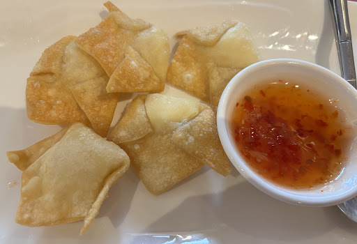 And the food. God, it was the most BLAND Thai food I've ever tasted. I don't know what fake accounts decided to review this place, but they clearly have never tasted a good Thai food place. Curry was aromatic, but too runny. The Tamarack Chicken had a good texture, but that's about it. We ordered an appetizer for the cream cheese wonton, but it never came out. And worst of all, we found A HAIR in our pad thai. While the food was bland, it was still edible. But the moment we found the hair, all the appetite in us just vanished. We were so thoroughly...