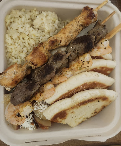 Read moreAn OK Meal on the Run Staying in town for a night, I ordered the Mega Platter plus extra beef skewer via Uber Eats, craving some Greek food on a cold evening. The delivery was on time, and the food arrived warm, which was a good start. The chicken and beef skewers were well-seasoned and tasty, but the shrimp? Totally bland—tiny and lacking any spices. The rice tasted like it had been sitting for a while, and the potato portion was smaller than expected for a “Mega” platter and the feta cheese, although very little, was a nice touch. The pita bread and Tzaziki were ok but not special.