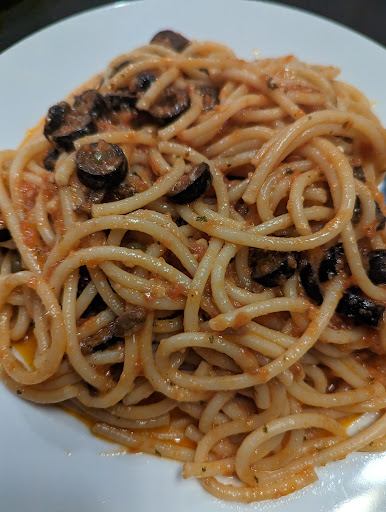 The chicken, mushroom with sun-dried tomatoes was absolutely fabulous. The chicken had a delicious cream sauce (with the perfect blend of seasoning) and penne had a wonderful marinara sauce. Her baked potato gnocchi with tomato sauce was on point with a good blend of flavours. Both dishes arrived in generous portions with an abundance of delicious homestyle flavour! There was plenty on the plate that we took some enough as a snack for later on (I recommend reheating it in the toaster oven for best results)! The house red was a great accompaniment to both delicious dishes. They also serve warm, soft and superbly delicious buns - they're awesome but try not to fill up on them as mentioned before, the portions are generous!!