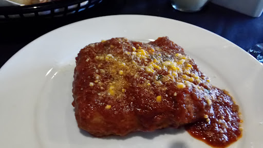 We had scoped out the menu online and were a little disappointed on not finding the eggplant parmesan on the menu. We decided to start off with the breaded mozzarella and a glass of house red. I decided on the chicken with mushroom and sun-dried tomatoes (comes with penne with marinara sauce) and she decided on the baked gnocchi.