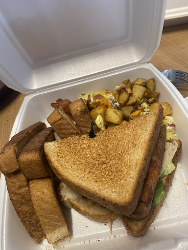 The food was cooked well and greatly priced and the servers were so friendly! There is a lack of accessibility. My father in law couldn’t use the bathroom because there are two little stairs and no ramp up separating the front and back, and my baby couldn’t sit with us in a seat because they didn’t have a baby seat. Besides the accessibility needs, the place is great! I had a clubhouse and it was tasty, crispy where it needed to be and wasn’t too messy! The fries should’ve been cooked a tiny bit longer as well, but they were still good. My daughter loved her milkshake but my mother in law said that it was a bit watery. I tasted it and would say they don’t taste like they’re made with ice cream, and that they’re the powder type milkshakes, (not sure if it is just similar in flavour) and would be better if ice cream could be tasted in it! My partner had the meat lovers skillet and said it was great! My daughter had a burger and wasn’t able to finish it there but ate it at home and she enjoyed it. My father in law had fish and chips and completed his meal without complaints, and my mother in law enjoyed what she was able to eat of her sandwich. Despite the accessibility, we’ll be back with just our kids to enjoy the food and we’ll remember to bring a...