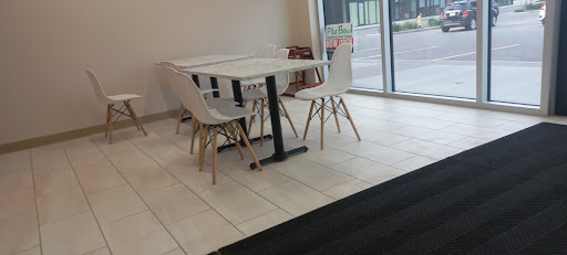 Place is new and clean. Parking is ample. Six tables inside with 2 tables having 4 chairs. Total seating of 12 to 16 people maximum. One kid's chair. One washroom which is accessible.