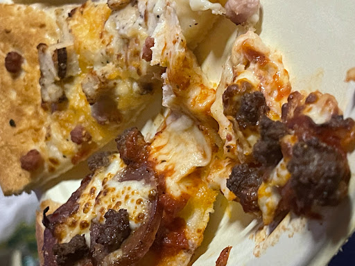 Since we were driving in very late into the city we planned to order pizza when we got to our hotel room. Ordering was easy enough and the time it took to be prepared was about the same. Getting to the store was a bit tricky and parking was great because it was so late. The employees did not look to be worried about hygiene during this pandemic with no gloves or mask on. They handed each other things with close proximity not practicing the social distancing procedure. And when getting into my car I could smell something was burnt I also smelled it when the employee handed me my boxes of pizza. My wife said it smelled good so I thought it was just in my head but I could smell the burnt smell. When we got into our room and opened the boxes the pepperoni pizza was not even cut all the way through so we had some big pieces of pizza to handle (3 slices all connected) and of course the pepperonis were curled upwards and black at the tip of curled parts and blackish red the rest of the pepperoni. The saltiness was so bad it was as If they sprinkled on two table spoons of salt on top. And the chicken parmesan was not as garlicky and flavorful like we usually have it. Just every bland and and dry. The effort to go back and make them remake it all was just too much and since we had our hearts set on pizza and didnāt eat a solid meal for 6 hrs we just ate it and drank lots of wine to try and cut the saltiness (did not help at all btw). Learn from our mistake for trusting this Pizza Hut. Wish I took more pictures to show how bad...