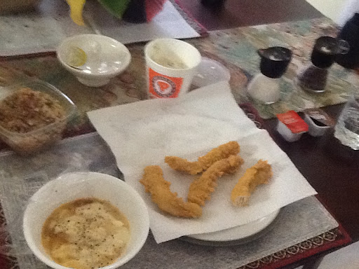 So why am I not giving them five stars? Because on the trip before the 'white meat heaven' one, I ordered the chicken strips (always after the white meat) and they were not very good. The rubbery texture almost made them inedible, but I have to say the bayou dipping sauce was fantastic. It has all the flavour of Frank's Hot Sauce but without the heat.