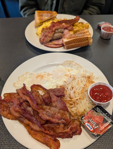 We stayed at the Quality Inn, and decided this would be the best option for some breakfast before we hit the road again. This was my first time eating at Smitty's, and what a standard it has set for me. The staff were great, the manager was the best. He was extremely polite and just the sweetest man. I'd go back just for him ! We went for breakfast around 8:30am, it was quiet (not noisy) so that was ideal. I got the Bacon Lover dish and I will forever get that. So delicious ! My partner got the Big Country Breakfast. Nice portion sizes, 10/10, and 100% recommend.