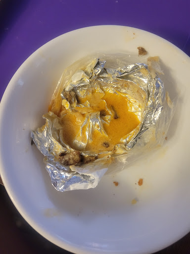 Friday August 8, 2024 (order #6) 2 cheeseburgers, no onions Fries and gravy Falafel wrap (all veggies, added banana peppers, fusion hot sauce and fries for a change)