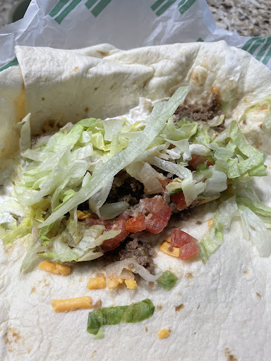The young girl slapped the two burritos together in such haste that the curdled sour cream was dropped on the beef in one, concentrated blob. There was some lettuce over all but that only hid the fact that there were only three, bitty pieces of old, grainy tomato and the 5-6 flecks of not real cheese.