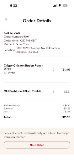 Fortunately, another staff member stepped in. After I explained the situation, he handled it very professionally. He offered me some delicious food, and I gladly accepted. I parked so I wouldn’t hold up the drive-thru, and shortly after, he personally brought me a tasty wrap and muffins. His professionalism and kindness turned what started as a very frustrating experience into a positive one.