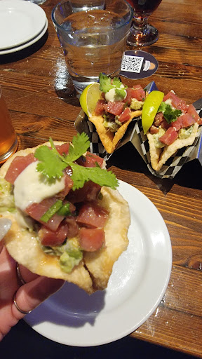 🤳First impression was it was kind of empty but the vibe was like a pub. We were seated by a woman who was dressed in what looks like pijamas... It was also a bit warm, with heat from the ceiling vent pouring down. 👉Our male server at first seemed pleasant but I quickly realized that he was very impatient and short with our group. Initially only four of us were at the table waiting for the other two but he only gave us three menus, one per couple. That was strange I had to wait to look at the menu. And the menu itself was very limited. 🍺When taking our drink order, I selected a 16 oz beer, but then I inquired about ordering a flight of beer and the server told me it was a better deal and cheaper to get the 16oz. Strange because I wanted to order a flight and the beer, seemed like the server was trying to talk me out of it. He wasn't really helpful with the beer selection either. 🌮 Ordered tuna tacos as a starter, other party members ordered the focaccia. The tacos were delicious but the focaccia was a rip-off. 9.00 for 6 pieces of bread. We ordered a second order of focaccia because it was so small. That's $18 for bread. 🍲 My husband ordered the ribs and he asked the server what sides were included and the server didn't know. He fumbled and just said assorted vegetables... For my main I ordered the duck breast. It was mediocre, served on a messy plate with overcooked green beans and carrots. It was $30 dollars, and my server gave me a butter knife to cut it with... 🍮 The server asked if anyone wanted desert, I said a dessert menu would be great to look at. As I was visiting with my other party members the server dropped the menu off and I didn't realize. Then he came back to ask if I was ready to order and I said I hadn't looked at the menu and he was very short with me and said I dropped it off 5 minutes ago... I ordered the creme brulee. Nothing wrong with it. 💁🏻♀️Overall for a restaurant that boasts about having awesome beer selection I would expect the servers to be helpful with that selection. Also the appetizer menu can be a lot more suited and paired with the beer. I would not recommend this establishment for a dinner party. The dinner menu is overpriced and underwhelming, lacking service and even proper utensils. You would get better value for your food and service dining...