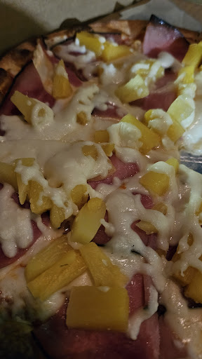 One Hawaiian and one with pepperoni and mushroom. The Hawaiian had thin crust and when I say thin I mean THIN. We watched "Mike" roll the dough through the roller to get it thin, it was fresh dough. It was light and I could eat it easier than a cracker, but it was still soft. Very impressed!