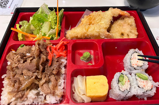 They had quite the variety of food on their menu and at affordable prices considering campus food prices. The menu was large, not overcrowded with menu items, and easy to follow. I ordered Bento Box A with beef (roughly $14) to go. I went at around 3pm on a Sunday, there were a few tables inside and I waited for just over 10 minutes for my food, which was a little longer than I had expected. The packaging for takeout was pretty meticulous with everything being packed nicely in a large brown paper bag. The food was the typical bento box style food but everything was quite tasty. The beef to rice ratio was a bit lacking but the beef had adequate flavor and the added tamago (sweet eg) was a nice bonus. The California rolls were pretty good and the assorted tempura was light and did not leave an oily taste layer in my mouth.