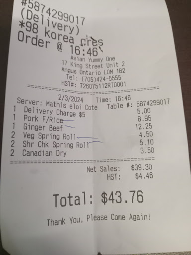 Ordered for the first time here tonight. We ordered off the dinner menu. Staff were very friendly, food was prepared on time. Food quality and portions were good. ( but- picked up order and was missing egg rolls. I live too far away to go back and they would not deliver them to us ) As per their advertising, I took the 10% off if I paid cash over 35$. My order was 41$ and when I looked at the receipt my discount was $2.10, I questioned the server as this equates to 5% discount and after stumbling his response was āthe machine does it automatically....ā Is the machine programmed to take off 5 not 10% as advertised ? When I questioned again he said the combos donāt apply for discountsā. Their menus indicates the lunch menu does not apply for discounts. Nothing else. I did not ask for my extra 5% back but just wanted to understand what was happening. Not sure if Iāll be returning. Will try their competitors first. Maybe if the owner can explain this better to me, Iāll reconsider. Overall not a great experience for our first time. Check your...
