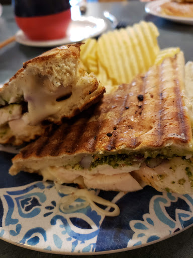 I was passing through Fernie and I got a very unique experience here, It wasnât bad or good. In order to end on a positive note Iâll start with the cons. Their straws, I donât mind paper straws but these were truly bad and ugly. It was pricey for me, an iced latte, small soup and sandwich over $30. Awkward entrance, with it being attached to another business or something, not exactly sure what it was. The bathroom was dirty and outdated. Overall not very clean, and they have so much going on everywhere it seemed cluttered. Some decor wasnât âitâ, I understand what they tried doing with vintage and retro vibes but the tables with the green tops, and those chairs were just old and ugly, some of the decor was the same, just old, not in a cute way. The service was good, not great but good. They have wheelchair ramps everywhere which was a huge highlight to see, especially since they had to add a ramp on multiple locations! Small but very nice and secluded patio with solid bushes! Some of the decor was very beautiful and unique. Loved the wall mural with all the colours! The best part of the experience was the food, it was actually really delicious. I was nervous about it because everything had a hit or miss feeling to it, but the food made it all worth it. Sandwich made to perfection, toast with butter also perfectly done, chickpea and curry soup was meh, but filling! The most important thing is the food being delicious and thatâs why I would...
