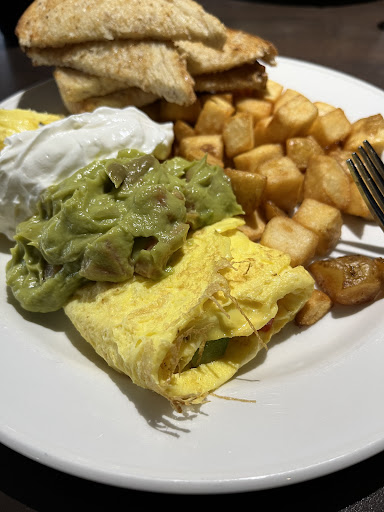Read moreCame here with a family of 6. 3 of us has gluten-free/dairy-free concerns. The server was very accommodating in that regard and went as far as custom billing our food to make sure it was fair. I myself never ate, but I had the coffee. Or rather, 2 sips. It was probably top 5 WORST coffee's i've ever drank in my 20+ years of drinking coffee. The server, albeit quite frank, did take the coffee back and remove it from the bill. Others complained of dressing inside their wrap being heavy on one side, missing from the other. Steak was only cooked on one half, leaving the other side raw and dangly. The restroom was not stocked/fully functional. Taps and dispensers were empty/broken. But, it gave enough respite for my family to have a quick bite and continue with our day. Chairs/tables were clean and spacious and were set in a manner where we could view the pool, which was a nice touch. Obviously some money was spent here in this building/venue, but there has been little to no 'love' put into it. Kind of a "things will get done when i get to it" attiude. No rush, no pride, no quality control, etc.