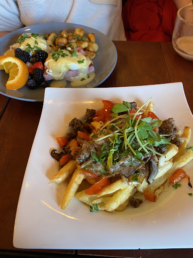 Read moreCute cafe, service was ok. Food presentation was nice. I ordered a brie with apple cinnamon and came with strawberries instead. A little disappointed it was on the menu but not offered. The bread that came with it was so soft and then a few random pieces of rock hard bread. Donair was really good. Fries were good. Taziki dip was good but the pita was burnt. Had to ask for a new one. Burger bun was also burnt. Tacos were just ok. It said shredded beef but was a burger patty. Before we left we ordered 3 hot drinks to go. The chai tea latte was sooo good. The white hot chocolate was flavorless and was handed to us so sticky I had to go back and ask for a...