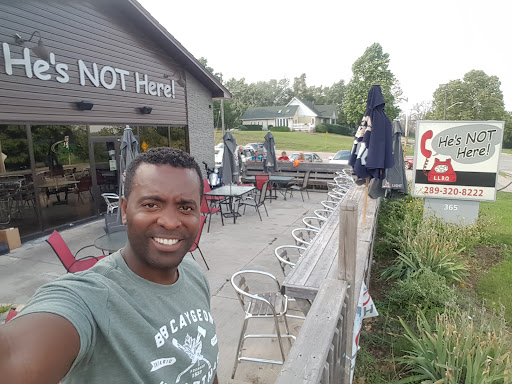 April 2025: "He's not here" is BACK!! I am so excited to see this. I always enjoyed this restaurant, right across from the Niagara River, just at the North end of Fort Erie as you are entering town. I was so disappointed to see when they closed down during the covid years and didn't reopen. They've just reopened in the same location, same name, similar menu / style... But not the same