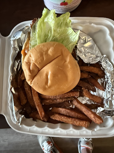 IMO go to Dairy Queen if you’re craving a burger…. There was no sauce on bun, no onion. Only “beef”, lettuce, tomato, cheese, and bacon I paid extra for. All in all a very bland very dry burger which I did eat entirely but the fries were inedible and i tossed them. Look at the pics and video.
