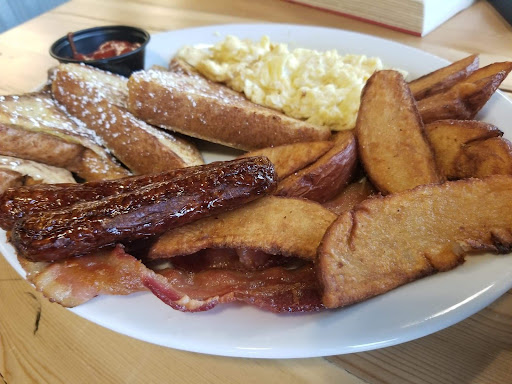 Read moreWent here for brunch on a Monday. They had chili and chicken and waffles on their "specials" board. They were out of chili. The description for chicken and waffles was "what else is there to say".. a lot.. a lot more to say, like the fact that the waffles are literally Eggos and the chicken is a thigh and drumstick combo that's maybe quickly grilled then baked. Not your typical chicken and waffles and should have definitely been mentioned when asked how they were. Waitress (blonde, wearing a Scarface t-shirt, smiled as thought she were Wednesday Adams and it hurt) didn't bother to advise my friend that they upcharge for rye bread when she asked for it. Steak and eggs...steak was overcooked. They didn't have wedges. Would have given it a 3 star, but the waitress had 0 care about our concerns, literally said "noted" and she seemed bothered when asked for a cup of coffee. $7 for a "large" chai tea that was literally a cup...money would have been better spent at Starbucks. Was not presented a bill, just a debit machine with the tip option present. Will definitely not be back nor recommend this place to anyone. Very...