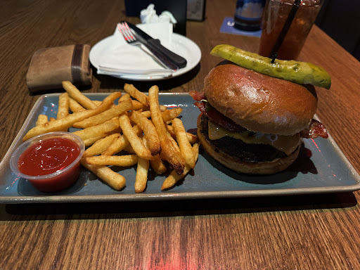Secondly, but most importantly, the food! I ordered the Waygu Burger (cheese +$1.50 bacon +$2.50) with fries in the side. Burger tasted great. Excellent choice of bun, perfect amount of burger sauce, and an excellent proportion of toppings. You will not go hungry here!