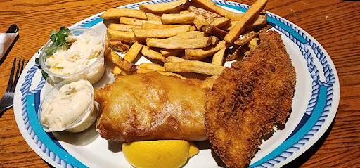 First time eating there in quite awhile. I was never impressed with anything from what I remember and that didn't change this time around either. The place looks outdated as it gets. This time we ordered, Calamari starter, I had fish and chips and the wife and son and the chicken finger dinner between them. The squid rings came out fairly quickly which was nice but they were very greasy and way too salty and I enjoy salt. Wife tries one and woudnt eat anymore.. The fish was ok. Not great but not bad. I could make better at home tho. The chicken fingers were horirbe and between the wife and I we came to the conclusion that they and to be old refried chicken fingers. And if it was it was just plain bad. The chicken didn't tear apart like normal chicken would. Literally had to rip it apart. The batter was hard and thick and tasted burnt. Was definitely not fresh in any sense. The French fries was actually pretty good. Left there and before we even got to the truck we both agreed that we would never go back there. With tip I spent around $90. Honestly, it wasn't worth 20 bucks tips included. I was wishing for much better as this was one of our first outings in a long time and was very disappointed. The whole experience at a restaurant...