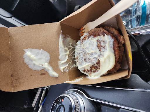 I'm driving through quapelle headed to the yorkton area. I stopped to grab a grandpa burger, no bun, no veggies, no sauce, add cheese and bacon ( carnivore ). After having to basically yell at the person on the mic because she couldn't understand me, I wait 15 mins to get 3 patties, cheese and bacon.... is what I thought. I paid for the extra charges of bacon and cheese too but No I got 3 patties NO CHEESE OR BACON and so much mayo on the top it looks like someone puked on it. Maybe I should have looked before leaving town but being I'm in a bit of a rush, I shouldn't have to worry about it being that wrong, I literally can't even eat this food now and I spent 15$!!!! The picture is with 2 scoops of mayo scraped off of it already. Ontop of that even if I did look before, I asked if there was a receipt, and she said it was in the bag. Well there is no receipt, so I couldn't have even taken it back unless I noticed it in the drive way. These people that work there have no sense of care when it comes to their job, food should always be looked at before being put in the bag so they can see if everything is correct or not, and they did none of that, it's very careless of them and that is a huge reason to why I will never come back to this location....