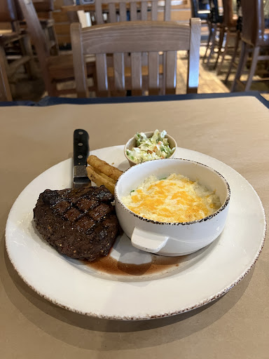 it wasn’t for your damn good of a server/bartender I probably wouldn’t have even accepted the re-fire on my order. Came in for a solo dinner cause I’m here for work, ordered the 10oz steak with potato smashers. Service was quick and attentive - I could see the server was also the bartender and had a pretty significant amount of tables So that being said, Service was pretty amazing given the circumstances. Here’s where it went bad, the potato whatever’s had zero seasoning in them and literally just tasted like bland potatoes with a blanket of melted cheese - wouldn’t get those again - my steak which I ordered medium rare came out well done. I cut the steak in multiple spots to confirm this - showed it to my server and he immediately took action and offer a fresh one to the doneness that I ordered originally. Mind you this was already 30+ minutes from the time I ordered so I’m pretty hungry at this point, new steak came out in under 10 medium rare; the quality of the steak was subpar, most pieces I couldn’t chew down and just ended up swallowing (pause no diddy) making this meal a pretty miserable and sad one, I don’t think I’ll ever be able to emotionally recover from this...