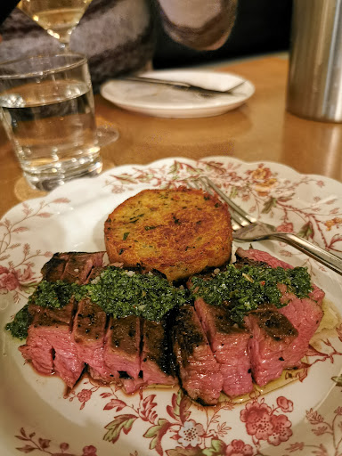 The beef tostadas were a single bite but a myriad of flavours. The scallion pancake was reminiscent of our lives in China, but for folks who've lived there, it's a bit more doughy than we're used to. That said, delicious. The accompanying sauce was perfect. The flank steak at medium rare was cooked perfectly and unbelievably tender while the chimichurri sauce added a nice punch of slightly spicy flavour. Pork belly is a dish that is extremely popular in East Asia where my wife and I met and lived. This one was on par with some of the best dongporou I've ever had (it's not 东坡肉 for those who know the dish). The only thing I would say is it would be nice if there were either a salty or acidic addition to the dish to balance out the various sweet elements. The sauce does a nice job, but a little more could have perfected things I think. We also had one of the best white wines I think we've ever tasted here and are now hoping we can find it outside this restaurant. Finally, we finished things off with the peanut butter semifreddo which was Lucious, smooth and had the perfect balance with the crunch from the candies pecans.