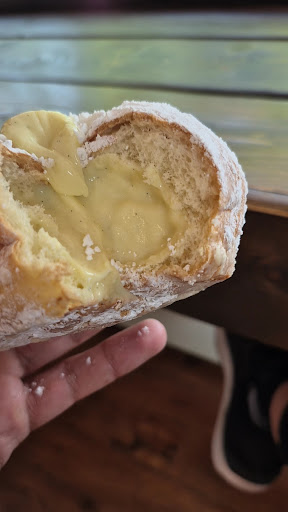 WOWOWOWOWOWOW! Absolutely stunning cafe with very unique pastries and lattes that make the trip worth it. The bombolone is the star of the show. It's like a custard filled donut and its so friggin good, I was left wanting more after I finished it. The levan cookie is also amazing. It's a soft cookie with flavourful walnuts and chocolate chips. The potato and bacon focaccia was delicious and crunchy. I also appreciated that they don't heat it to the point where I have to wait for it too cool down. It came to my table warm and I could eat right away. Lastly, the lavender coffee. Delicious. I normally have to add extra sugar to my coffee because I have a sweet tooth but their ratio was quite nice. Strong and flavourful coffee with the uniqueness of the lavender. I also love the latte art heart design that they do just to give it that je ne sais quoi.
