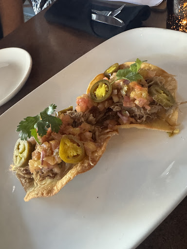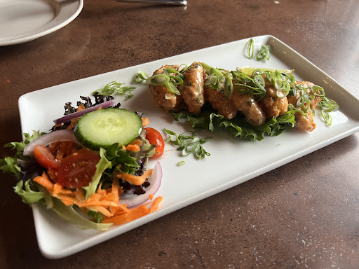 Read moreThe atmosphere of the restaurant is nice, but I wouldn't want to be seated at one of the 2 or 4 tops that is just sitting in the middle of the room. Would be nice if they had some kind of privacy dividers to make it feel more intimate. I see other reviews mention how smokey the dining room was and I agree, I think they need their HVAC serviced. Our waiter was pleasant but not much of a people person. As for the food, the bam bam shrimp were tasty, but they had a little handful of mixed greens with red onion and baby tomatoes on the side that had no dressing of any kind, didn't seem to do much for the dish. The dessert, sticky toffee pudding, was really solid. As for the main entrees, the lemon meringue salmon was decent, the Korean fried chicken had good flavors, but they used a 9oz butterflied chicken breast which seemed like overkill and didn't present well, two chicken thighs would've been more tender and plated nicer. Both plates had a side of roasted potatoes which had clearly been sitting in a warming oven for too long, over seasoned with chili powder and dried rosemary and were room temp. Overall, disappointed with the main...