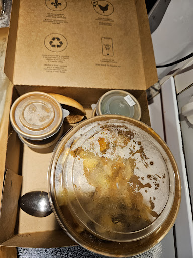 Absolutely horrible experience in every way. If you don’t speak French don’t expect any sort of decency or respect. Delivery guy bombarded by my twice shouldering me both times in a hurry, lady who took our order scoffed at us for asking questions about the menu, and then didn’t acknowledge when our food was ready and just put it on the counter and continued to talk to delivery guy. After 10 minutes she finally said “K food is ready” and pointed at the boxes that had being sitting on the counter for the last ten minutes. Just got home and realized we did not even get the cans of pop included in the meal. Not sure what put a worse taste in my mouth, underwhelming and over priced chicken and fries or the attitude and unprofessional attire of the blonde lady at the counter dressed up like she’s going out clubbing. Please,...