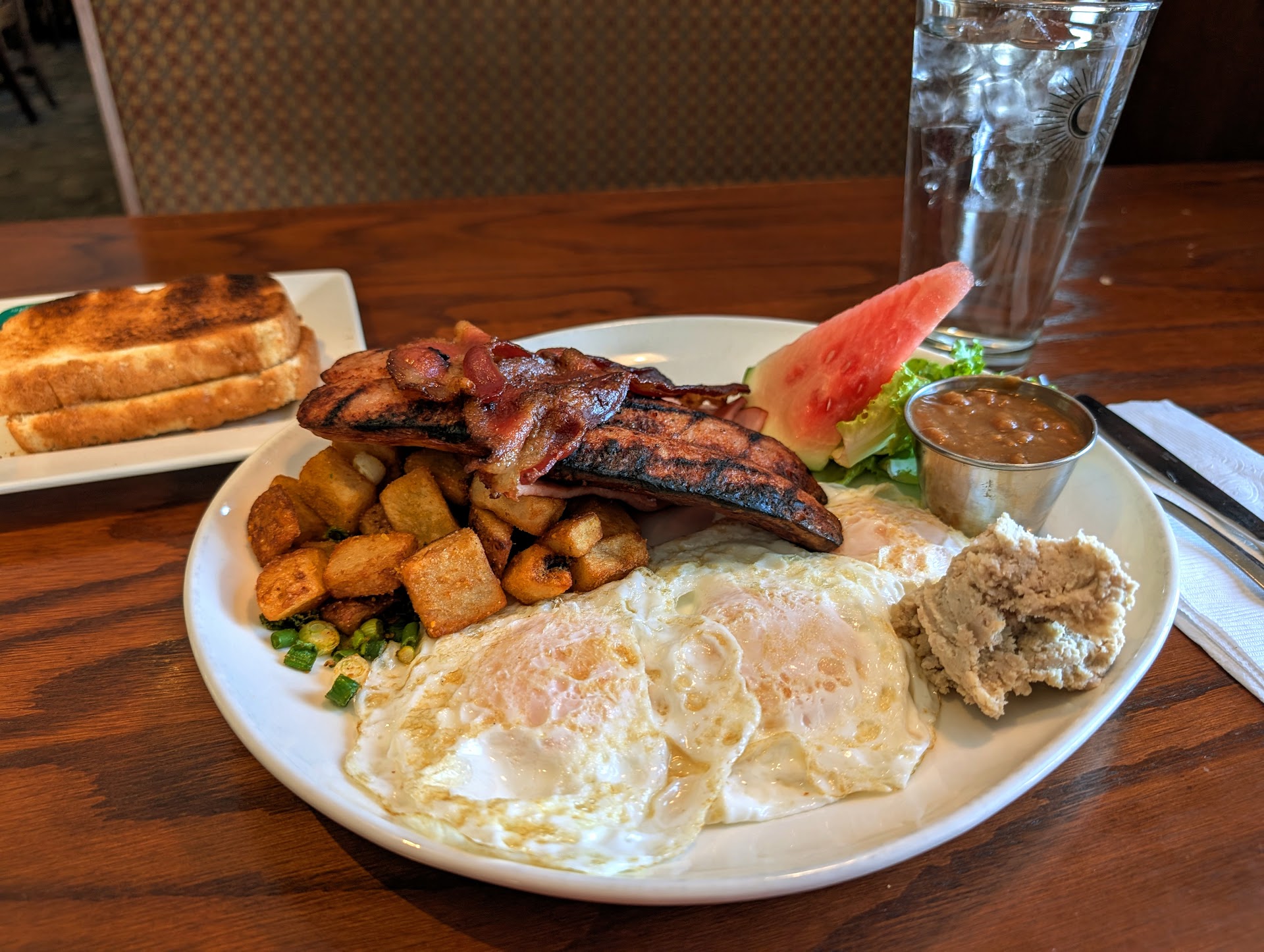 Ps Any place charging $2 to add onions on your potatoes are delusional. Not cause Cora does it that you need to copy bad ideas. Do better. You have good food, you're just trying to be too clever.