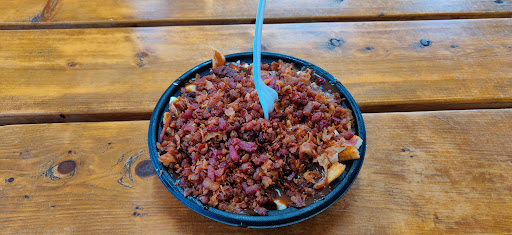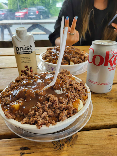 I've eaten enough poutines by now to know what I'm talking about. Want to test to see why my review is valid? First of all when you buy the poutine you don't get to see what's going on in the kitchen. Normally that would not be a big deal but in this case if I saw how they were preparing the potatoes I'd say they're likely not using fresh potatoes. And if they are, they're screwing up the process somehow! The fries aren't even greasy! And I know that sounds good but that means they're not using freshly cut potatoes cut on-site or they're not deep fried...the result is a product that doesn't reheat well and doesn't satisfy when fresh...see for yourself. The poutine only has three ingredients so if one isn't good then you're done for. Arguably the most important is the fry as this is the most used part of the meal. Anyway, there are better options out there especially for the price. Maybe I will try a small again later and see if it improves and change my rating but for now I'm very disappointed with...
