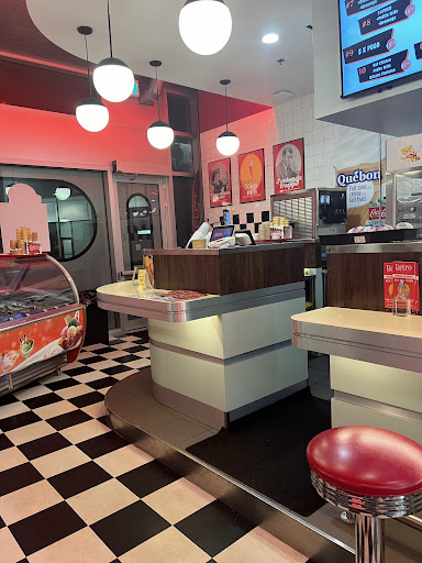 The decor: honestly the decor was A1, very retro indeed, with a functional jukebox and all. The food: at first glance, the pricing seemed alright. We had hotdog/pogo combo with poutine and a burger. The poutine were very generous in size. Lots of cheese. The gravy was cold and clumpy though which definitely was a disappointment, fries were decent. The hamburger was very sad, the size a burger at mcdonalds, no taste in the barely-there patties. The produce(tomato/lettuce)was nice though. The service: upon entering we were greeted. The cashier took our order and we sat down. While waiting the cook(im assuming the owner) asked me if id like my whole order together or he can serve us what is ready as it is ready. We opted to wait. He prepared a tray on top of the counter and added my items as they were ready. At this point, his friends came in and sat at the stool in front of the kitchen/counter. They were rowdy and their conversation with the cook was in parts unpleasant. I could also see their spatter flying around and thinking, my food is on that counter right in front of them... gross! At this point i received my order, some items are cold(i guess my fault for waiting), some items were missing ingredients. I returned what i was unsatisfied with and mentionned to the cook(owner) that this isnt the most pleasnt environment. His friends did leave, and he served us a side of onion rings to apologize. He also tried to explain to me that his friends ordered food and they werent loitering... he took the time and listened to my point of view. As we were leaving, he gave my children 2 lollipop.