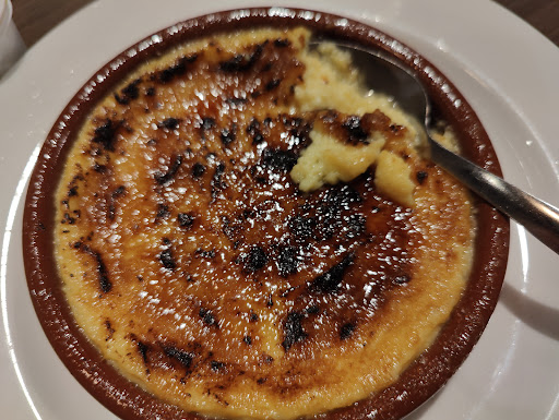 Read moreI had the brochette de poulet and paired it with the table d'hôte where I selected the garlic shrimp baked with cheese and then had decaf coffee and the crème brûlée in my picture.