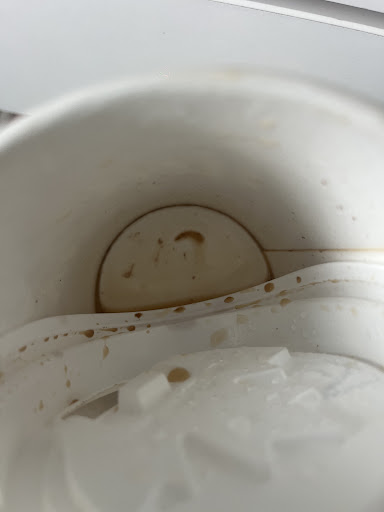 Read moreMy father and I went there for drinks and we only got disappointment. So I ordered our drinks inside, where I guess nobody cleans the tables on floors, and order at the cash. I ask in French that I want a large green tea and an iced pumpkin spice latte. I get my iced latte too quick, so I took a sip and tasted no coffee inside. I ask the guy if he put my espressos in the latte, and he said in a cold latte there is no espresso in it, only the hot drink. I work at a Tim, and told him, so you just give me milk and ice ? And he said yes. I told him to put the espresso inside the drink, but he didn't want to. After a few heated arguments, he finally did it. My drink was now all sticky with the mess he did. We finally got the tea, which was cold...