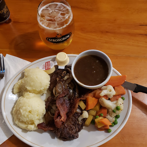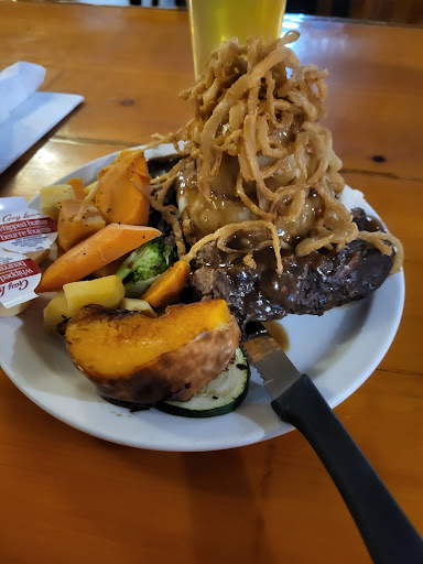 Read moreTo be fair this one will take a couple more visits to decide, as it looks like reviews are all over the map. I liked the small town saloon type decor with tree trunk table supports and the full length outside porch reminded me of an old western movie. We arrived a little early before the dinner rush and even then the service was slower then you'd expect. Prices were affordable. Ordered the half rack rib special and true to the menu the ribs were falling off the bone. The mashed potatoes were fine, portions were fine. But. I am a rib connisour. I enjoy smokehouse ribs from ribfests. So although they tasted ok they need to up their game, perhaps with an in-house smoker. Beer on tap was fine, my wife's fries were fine. The inside got louder but you could see families and friends getting together and having a relaxed time. The place could do with some live entertainment. This is a place you could let your hair down a bit. Be prepared to wait, it is popular among the locals. The staff was friendly but I sensed a bit of a siege mentality vibe, maybe they need more staff to handle the crowds. Hopefully they are being treated right by the cooks and management. As a past restaurant owner and a foodie the stars we give matter. This...