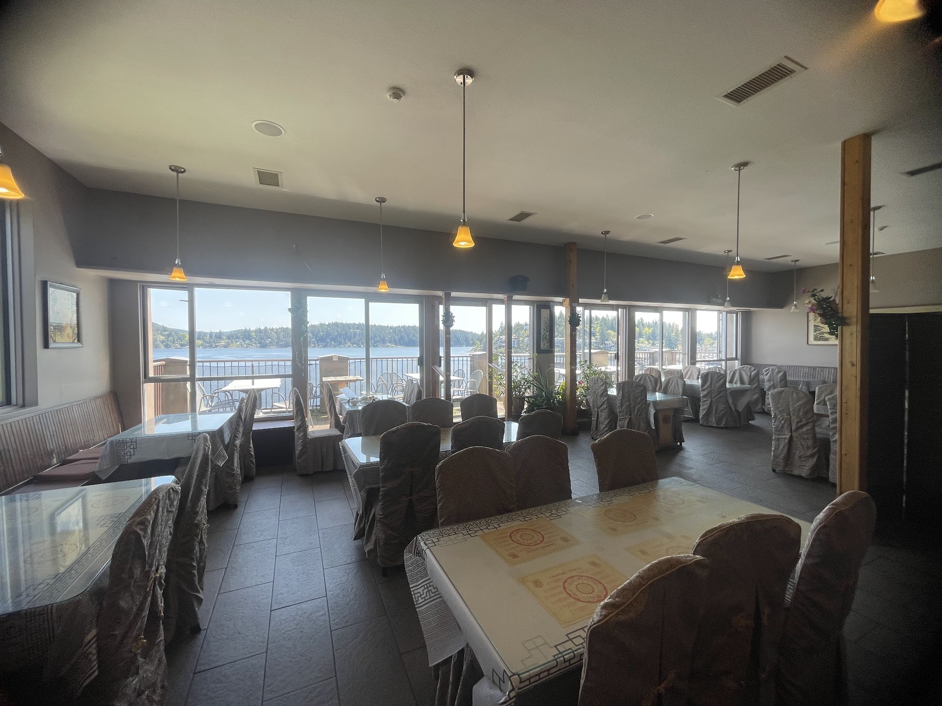 The restaurant itself is nice. The seating and tables are spacious, and I've never experienced a dirty table or chair. Granted, we've always been there right after opening, so who knows how quickly they clean the tables after people leave. The unit used to be a Mexican restaurant, so some artifacts of it exist, but I think they go well with the Chinese theming. I don't recommend eating outdoors, because of the abundance of seagulls. The bathroom is good. All I need to say there. I only rate the atmosphere 4 stars because the restaurant's interior isn't that good. It's far from unappealing, however it's not an interior you can lose yourself in. The Chinese zodiacs on the tables are nice to look at though.